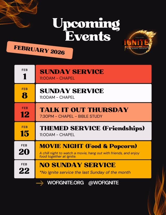 Welcome to Ignite Youth Ministry! A place of hope and healing, where faith meets real life, and every student belongs. As a ministry under Word of Faith Family Worship Cathedral, our mission aligns with the heartbeat of our church: